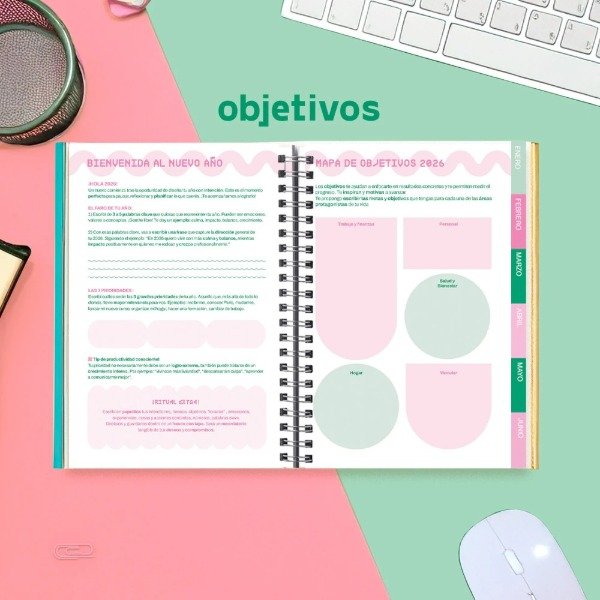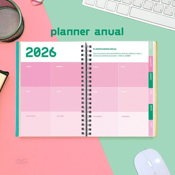 La agenda Chimi Productividad 2026, ha sido cuidadosamente diseñada pensando en todas tus necesidades.,no solo es funcional, sino que también está llena de inspiración y mensajes positivos que te animarán a seguir adelante. Con frases motivadoras y ejercicios de reflexión, te ayudará a mantenerte enfocada y comprometida con tus sueños y aspiraciones.