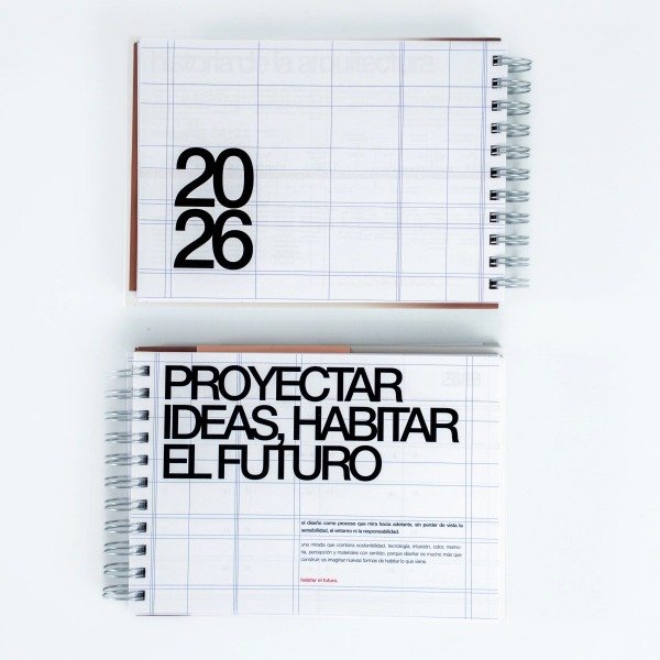 Pensada para arquitectxs y diseñadorxs, trae info técnica curada, espacios para planificar proyectos, bitácora, checklists y herramientas que te resuelven la vida. Este año, además, con interiores a todo color para que planificar no sea gris.