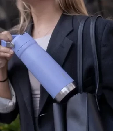 Con un diseño práctico y ergonómico, la botella cuenta con un diámetro de 8 cm y una altura de 23.5 cm, lo que facilita su transporte y almacenamiento. Su superficie antideslizante y sistema antigoteo la convierten en una opción segura y cómoda, mientras que su tapa rebatible y sorbete integrado añaden un extra de conveniencia al beber.