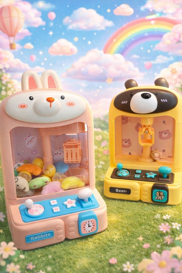 Máquina saca peluches. Incluye 20 muñecos y cable USB. Medidas: 20.7 x 19.7 x 30 cm. 2 Modelos