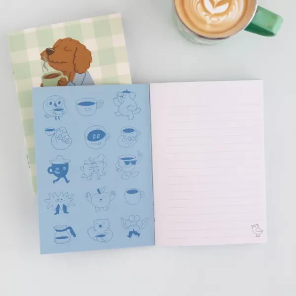 El set incluye dos libretas con dos estampas diferentes. Una de 32 hojas rayadas y otra de 32 hojas lisas.