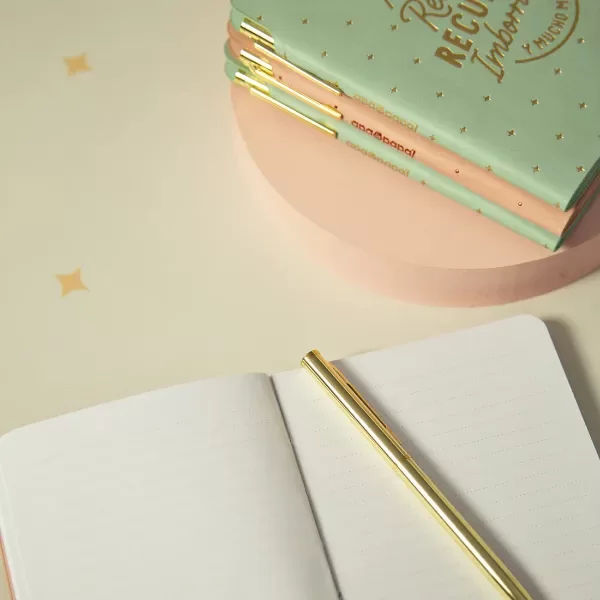 Amamos esta nueva colección de cuadernos de cuero ecológico! Delicados, elegantes, hermosos! En su presentación A6 viene con puntas redondeadas y tapa semi rígida. Rallados en su interior, con sector para titulares y fecha. Y una sorpresa…viene con una brome dorada de regalo!! Un detalle super especial.
