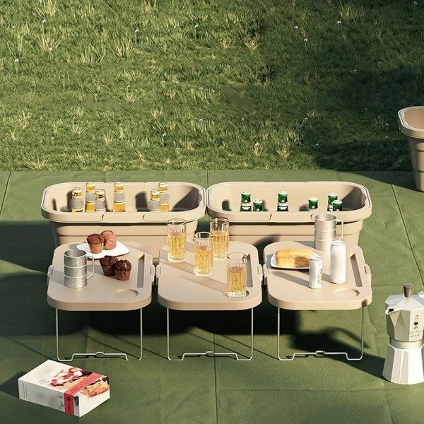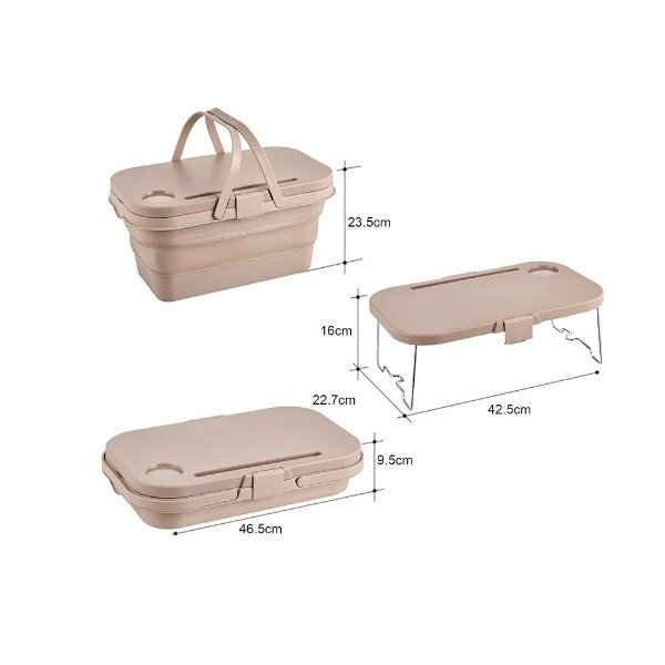 Disfruta de un excelente dia de picnic con esta practica conservadora plegable. Su tapa se transforma en bandeja con patas de metal plegables. Tiene posavaso y portacelular.