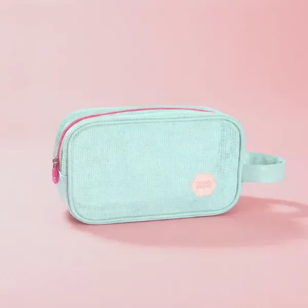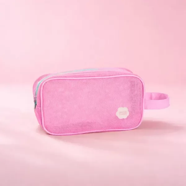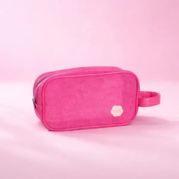 Este neceser está confeccionado en poliéster mesh, ideal para el uso diario y para tener todo a la vista.