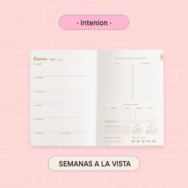 Formato: A5 (15 x 21 cm.) – Semana a la vista.