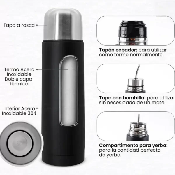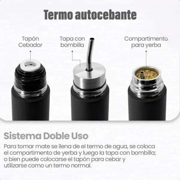 2 en 1: podés usarlo como termo común o como Mate Listo autocebante.